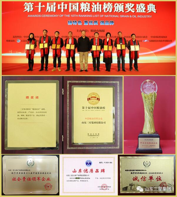 新冠肺炎疫情肆虐、中美貿易摩擦加劇之下,經(jīng)濟不確定性增加,注定了2020年是不平凡的一年。然而,這一年,山東三星集團逆勢而上,奮力拼搏,特殊年份依然“星光燦爛”,交上了一份令多方滿意的出色答卷,贏得了中國糧油領軍企業(yè)、全國農業(yè)產(chǎn)業(yè)化龍頭企業(yè)100強、中國玉米油加工企業(yè)10強等多頂“桂冠”。