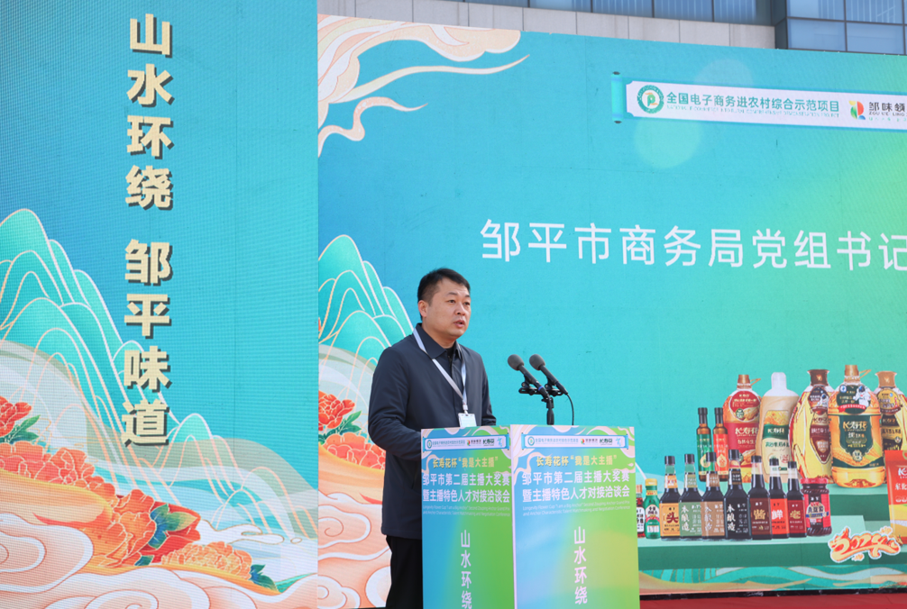 會(huì)上,朱林在致辭中介紹了鄒平電商產(chǎn)業(yè)的規(guī)模成績及未來發(fā)展趨勢,他講到,近年來,鄒平立足服務(wù)構(gòu)建新發(fā)展格局,進(jìn)一步發(fā)揮電商平臺(tái)數(shù)字賦能和創(chuàng)新驅(qū)動(dòng)作用,以優(yōu)良的品質(zhì)供給引領(lǐng)創(chuàng)造消費(fèi)新需求。本次活動(dòng)是展示鄒平電商發(fā)展、特色產(chǎn)品推銷及培養(yǎng)直播人才的一次盛會(huì),對(duì)于優(yōu)化產(chǎn)業(yè)供應(yīng)鏈,提升產(chǎn)業(yè)層次具有重要意義。希望通過比賽,能夠挖掘一批特色鮮明的“網(wǎng)紅”隊(duì)伍,為更好地宣傳鄒平增“動(dòng)力”添“活力”,為服務(wù)和支持鄒平產(chǎn)業(yè)集群高質(zhì)量發(fā)展貢獻(xiàn)電商力量。