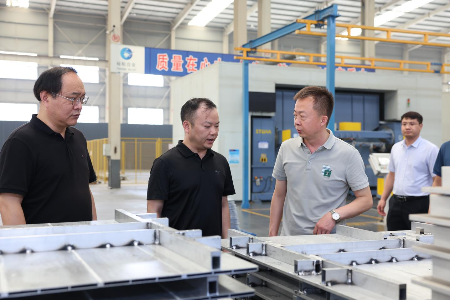 在裕航合金高端鋁精深加工產(chǎn)業(yè)基地,考察團實地參觀了裕航合金鋁精深加工生產(chǎn)車間及產(chǎn)品展廳,詳細了解企業(yè)在鋁精深加工領域的技術(shù)創(chuàng)新、產(chǎn)品研發(fā)、生產(chǎn)流程以及市場應用等方面情況。
