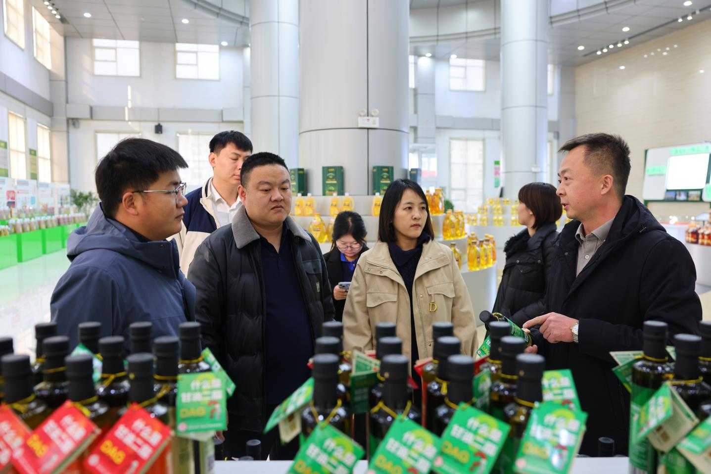 在長壽花食品綠色生產基地,調研組實地參觀了產品展廳和全自動灌裝包裝生產車間,認真聽取了企業(yè)在糧油精深加工產業(yè)領域的工藝革新、新品研發(fā)、科創(chuàng)引領等相關情況介紹,了解了長壽花從原料源頭到終端產品的高標準全產業(yè)鏈質量管理體系,對長壽花玉米油這一冠軍單品凝聚的優(yōu)秀品質和技術內核有了更深層次的理解。