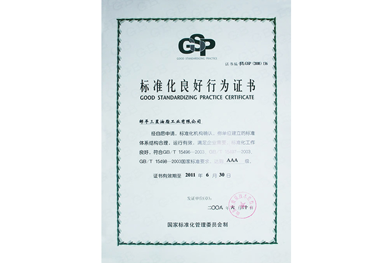 標(biāo)準(zhǔn)化良好行為證書
