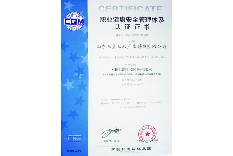 職業(yè)健康安全管理體系認(rèn)證證書