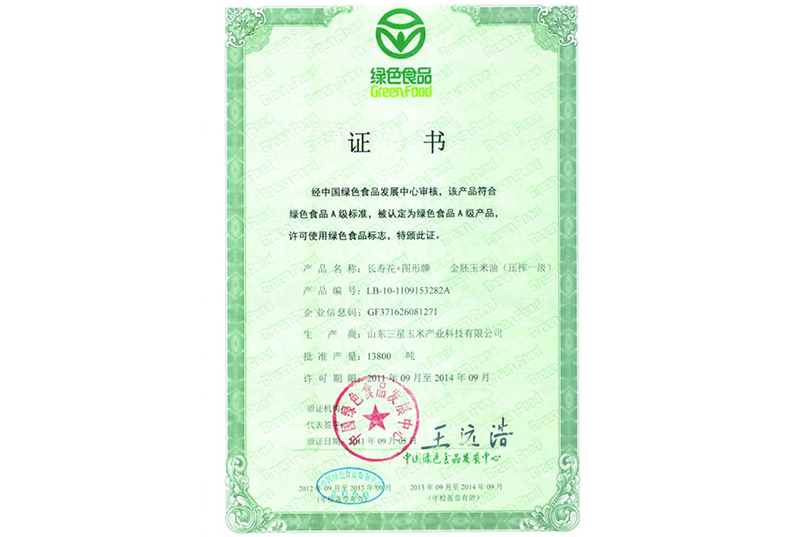 綠色食品證書